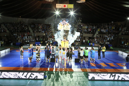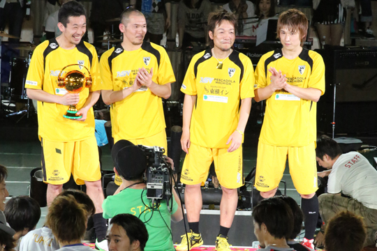 5月2日(木)に開催されました、MIFA presents YOYOGI CUPでペスカドーラ町田が見事優勝を飾りました!優勝賞品として黄金のトロフィーに加えて、副賞としてUKASUKA-Gが制作したオリジナルジングル(応援歌)の目録を頂きました。